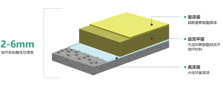 具有优异的物理性能和耐介质性能且生命周期长,伸长率是环氧地坪材料的5-10倍,对混凝土具有优异的裂缝追随性,能有效防止裂纹及开裂。