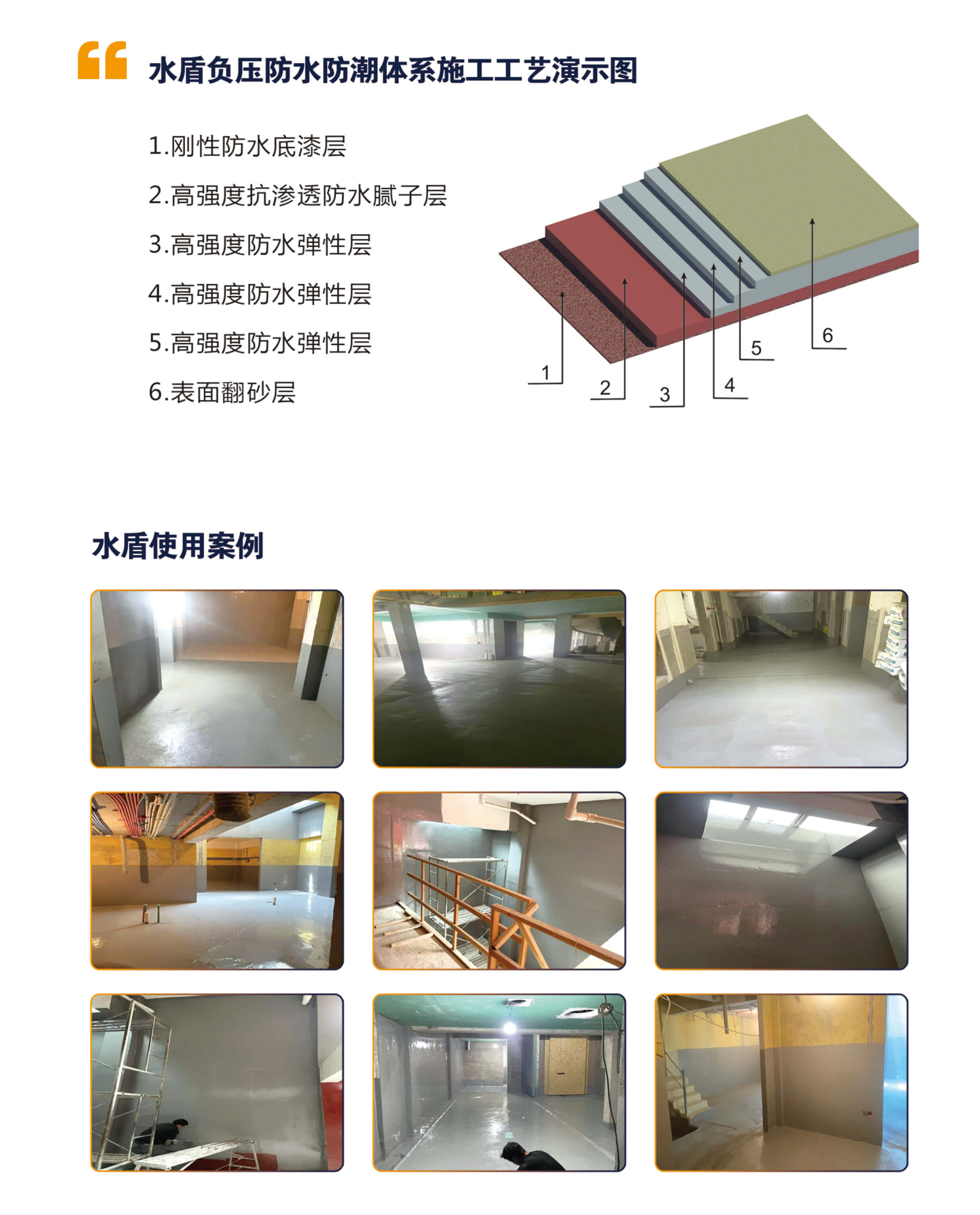 水盾地下室负压防水防潮施工体系专为高端别墅地下室设汁,精准解决负压环境下的渗漏、湿难题。为高端住宅地下空间构建可靠的防水防潮屏障,以卓越品质守护地下空间干爽舒适。